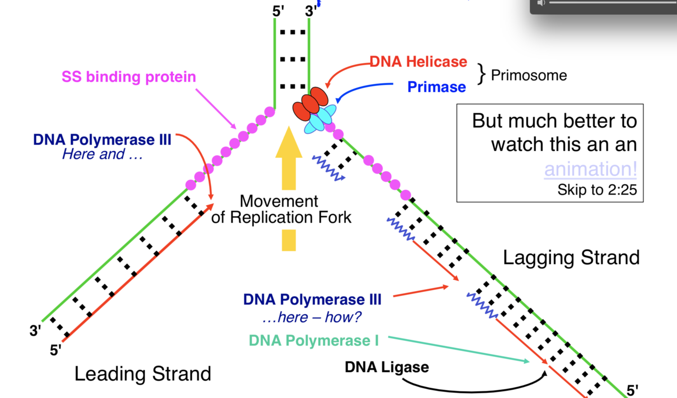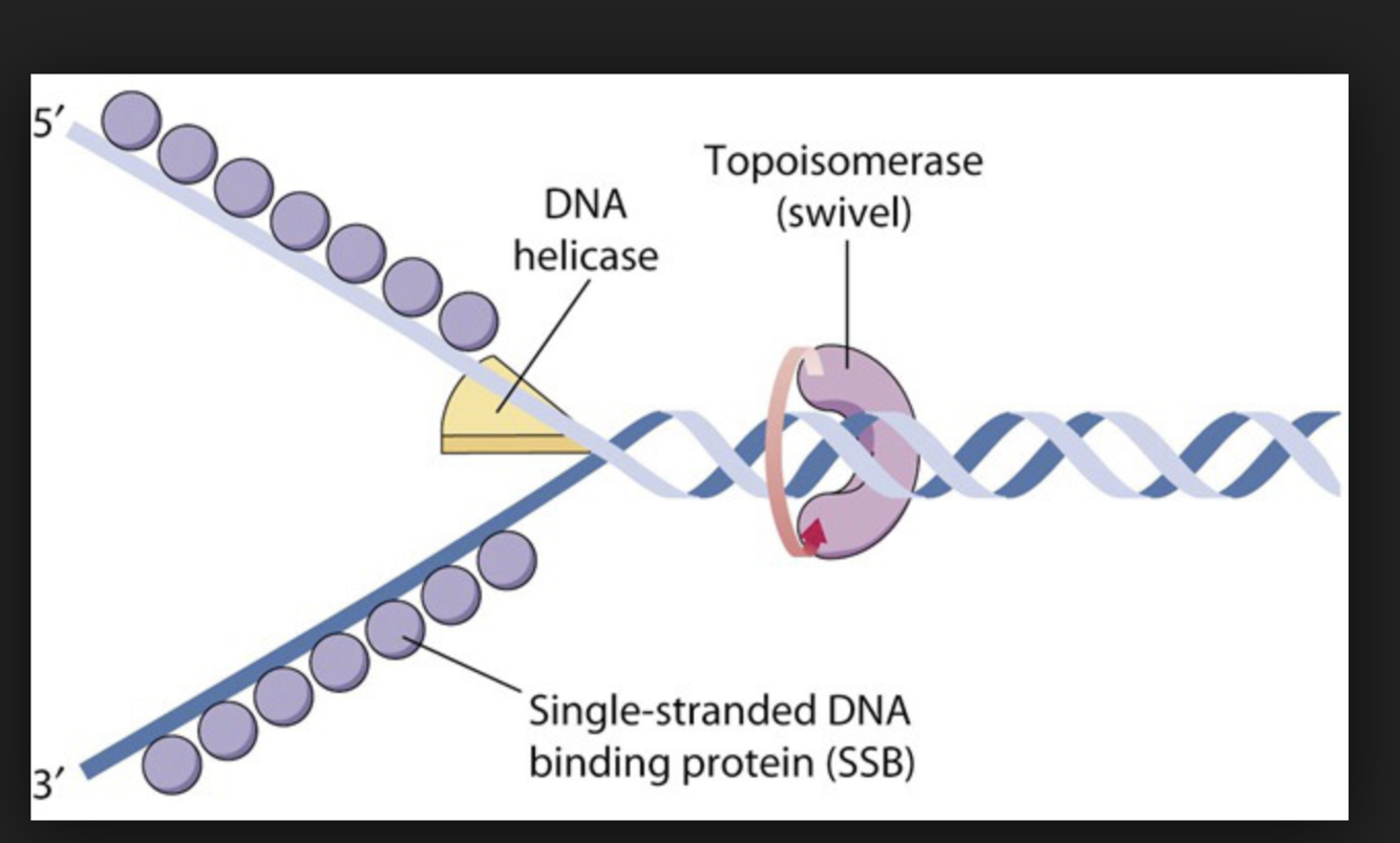 binds to either end of the melted region and forms the replication fork