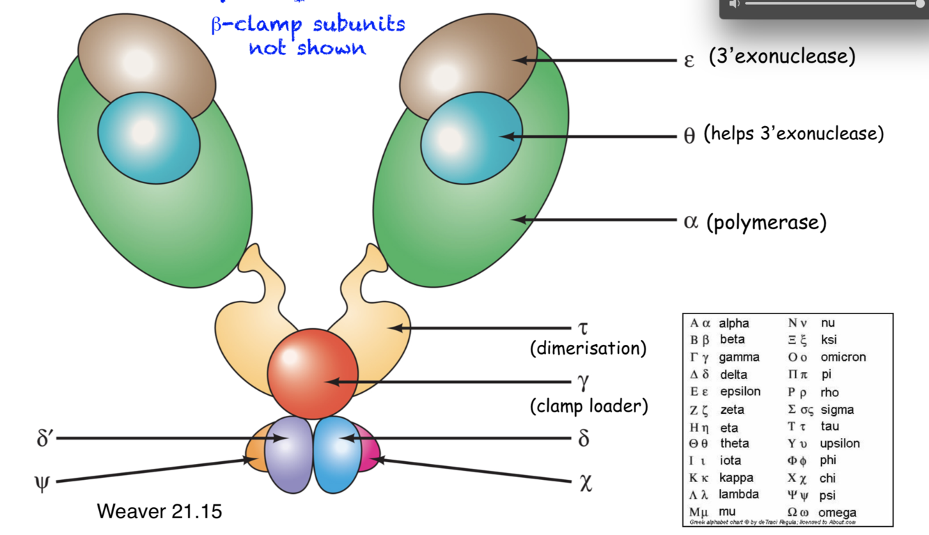 label these subunits for the polymerase 3