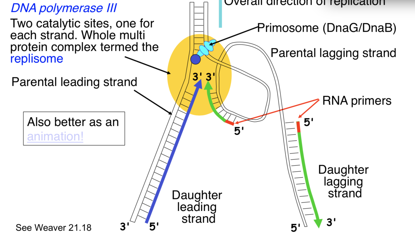 DNA pol3 has two catalytic sites for each strand