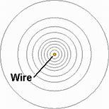 field lines getting futher apart- field getting weaker as you move away from the wire