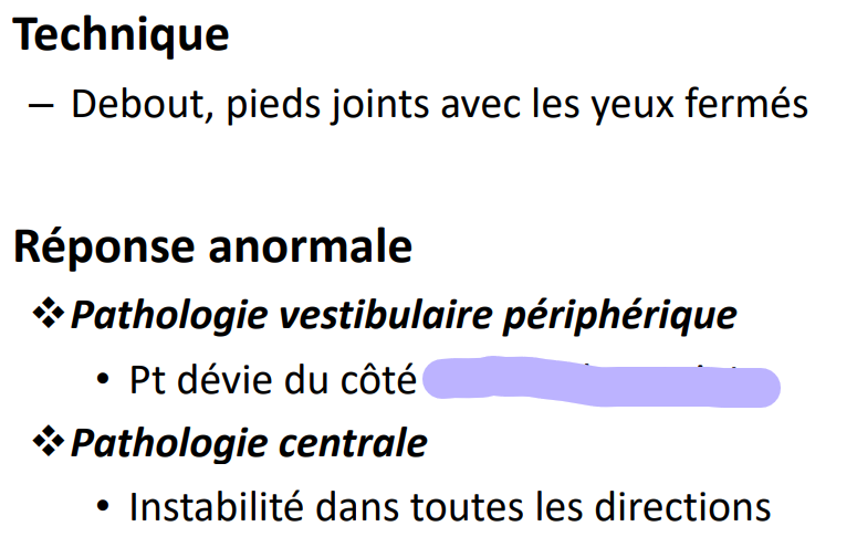Une déviation constante vers un coté indique une atteinte vestibulaire périphérique unilatérale du même coté