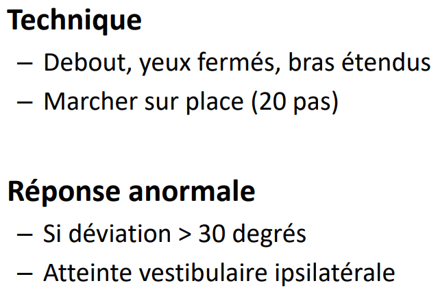 Le test de Fukuda consiste à faire marcher le patient sur place les yeux fermés.