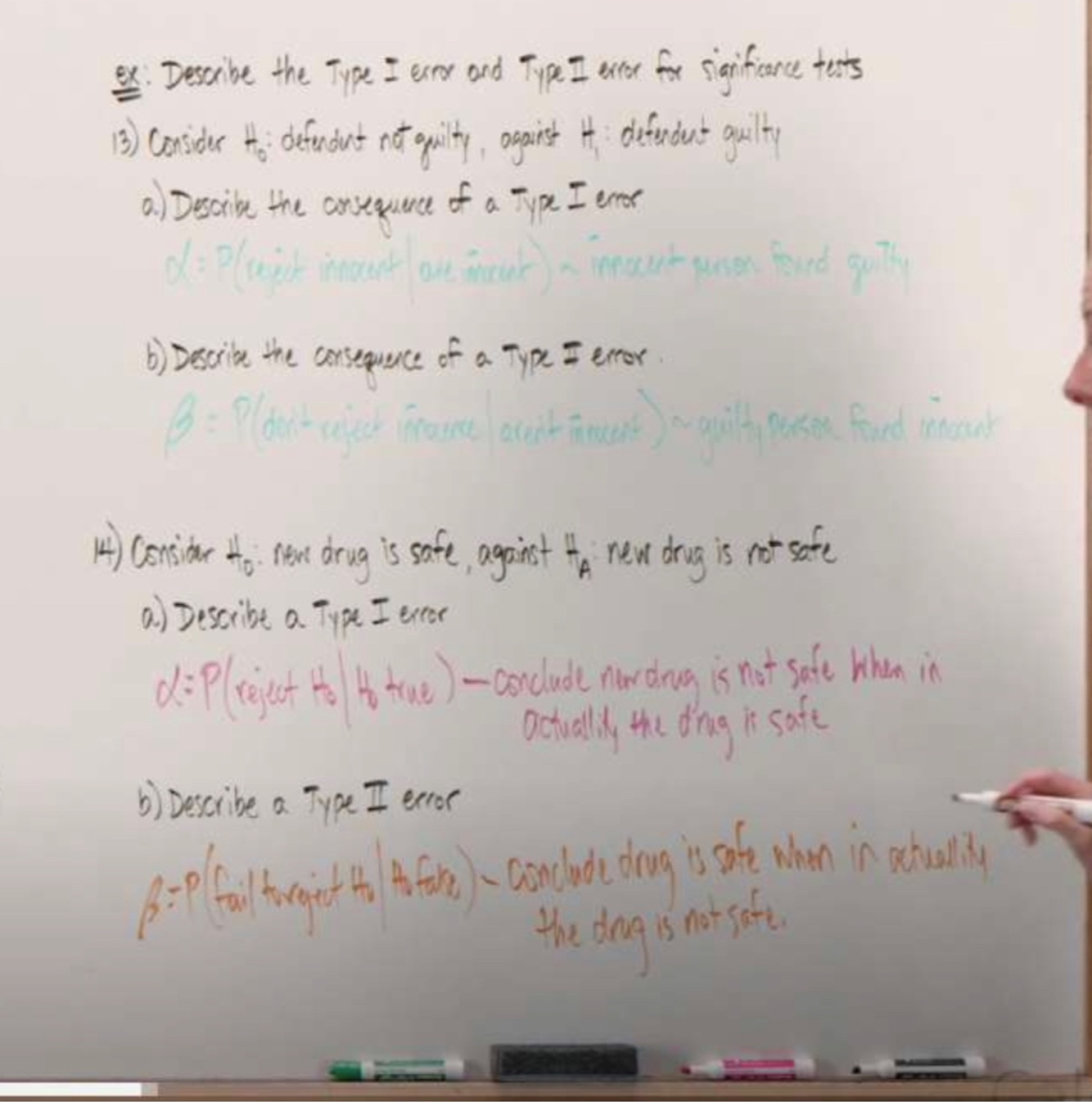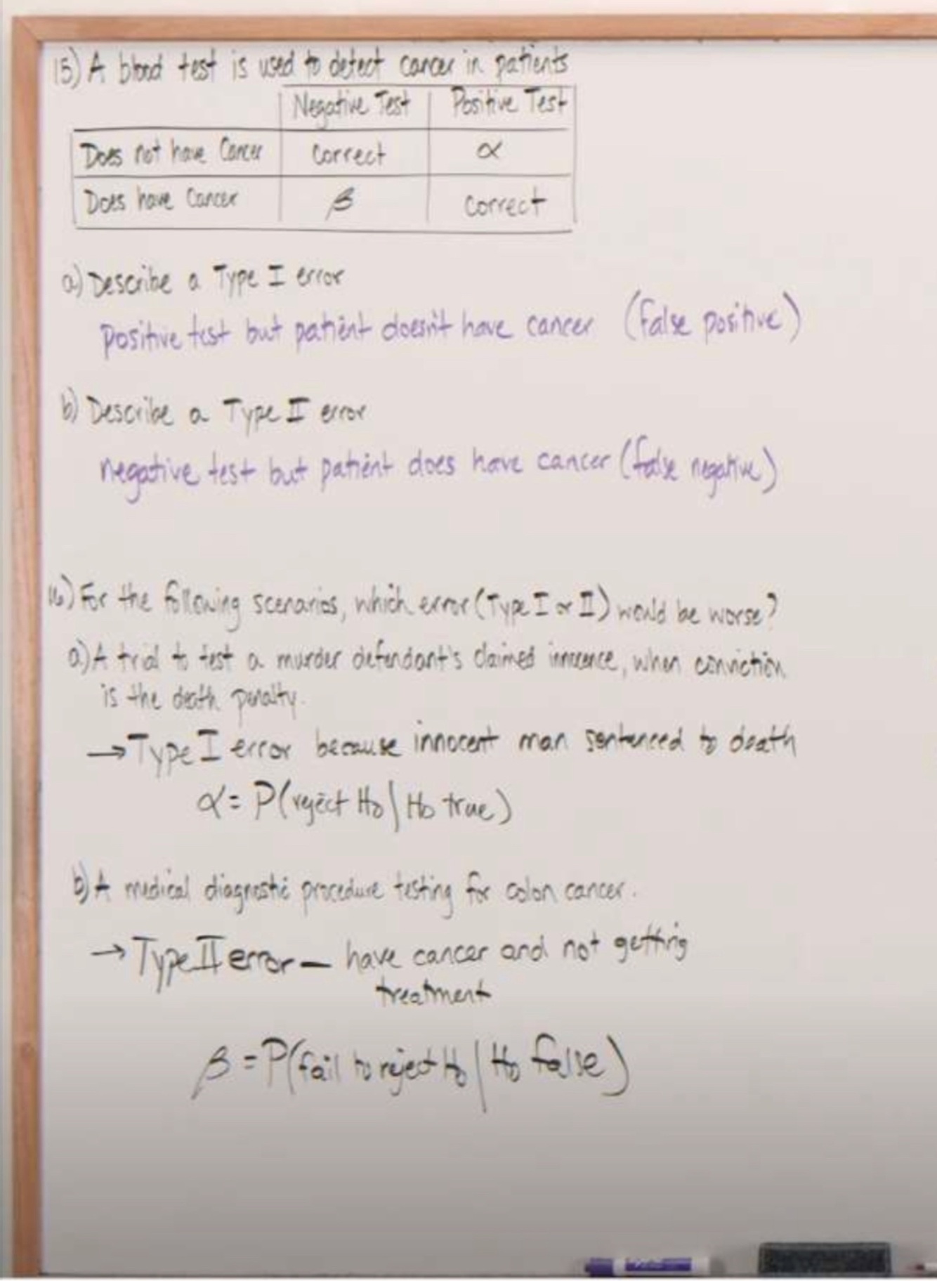 Describe what is a Type 1 error vs Type 2 error