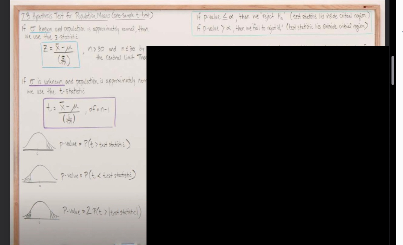 Hypothesis test for population means(one sample test) ex1