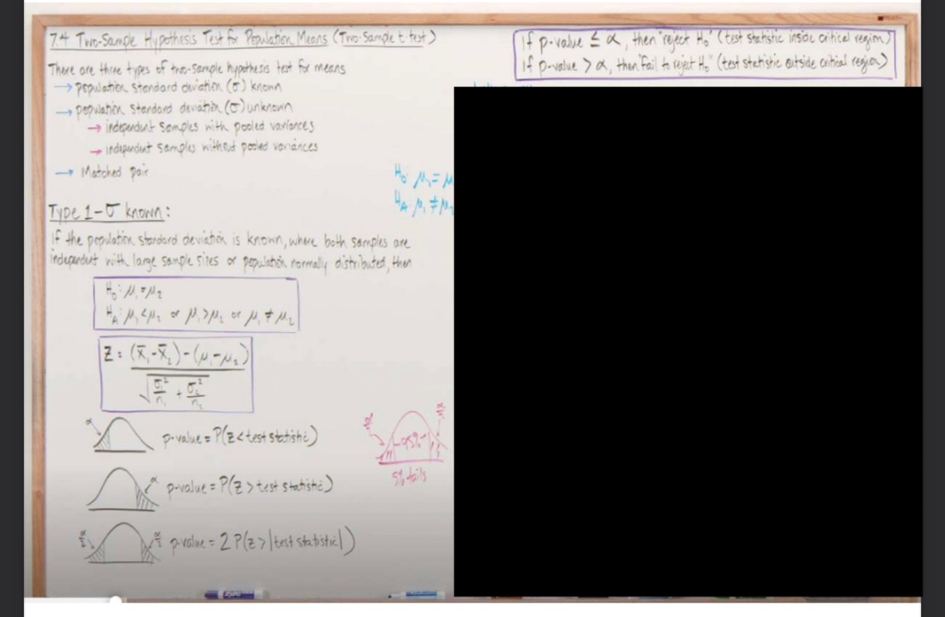 Hypothesis test for population means(two sample test & known standard deviation)