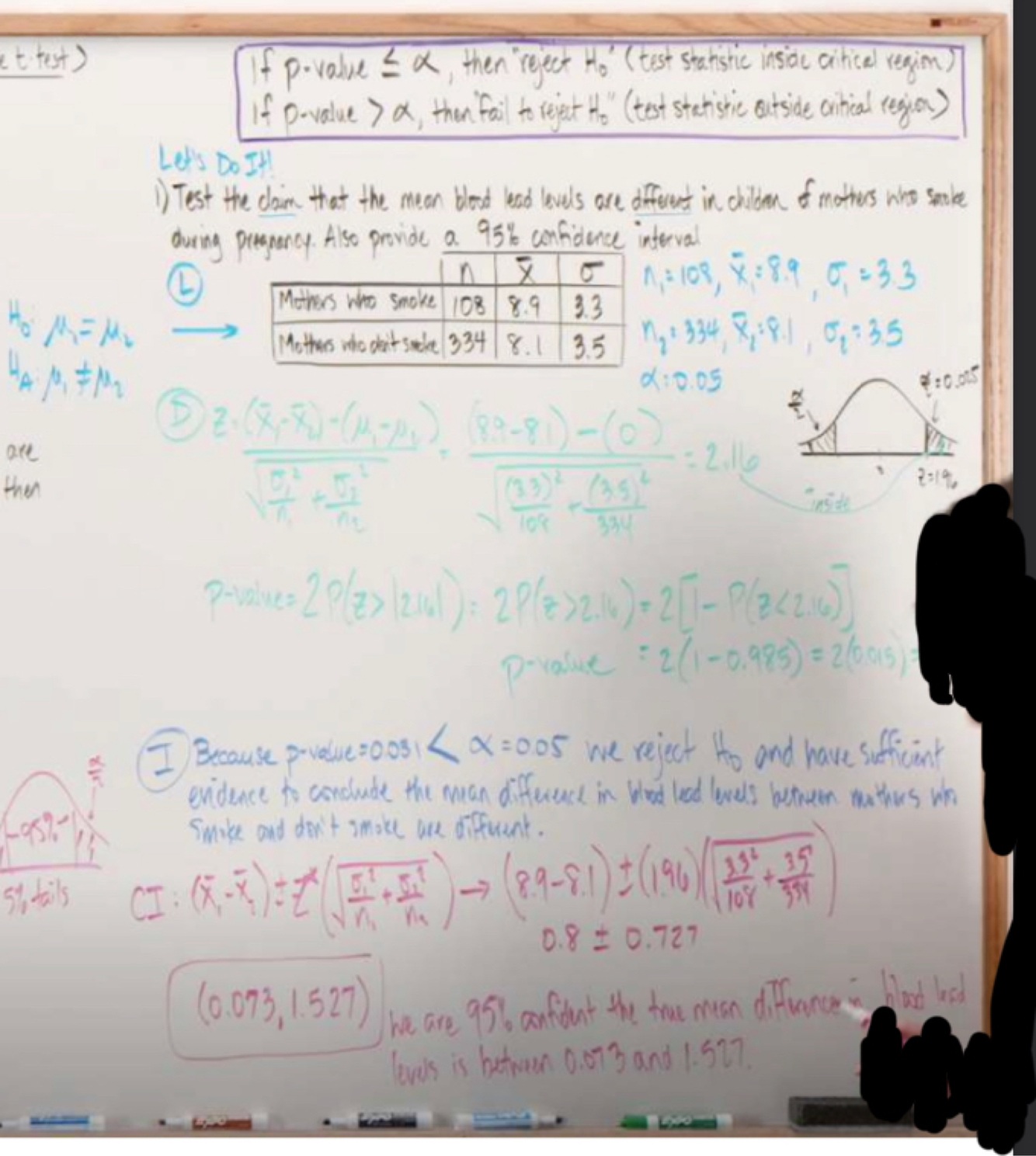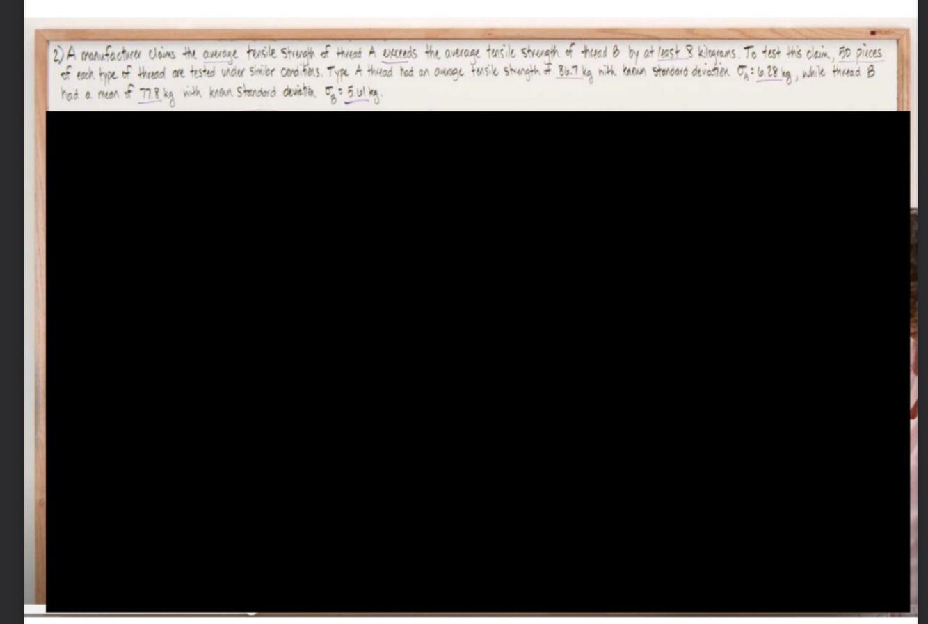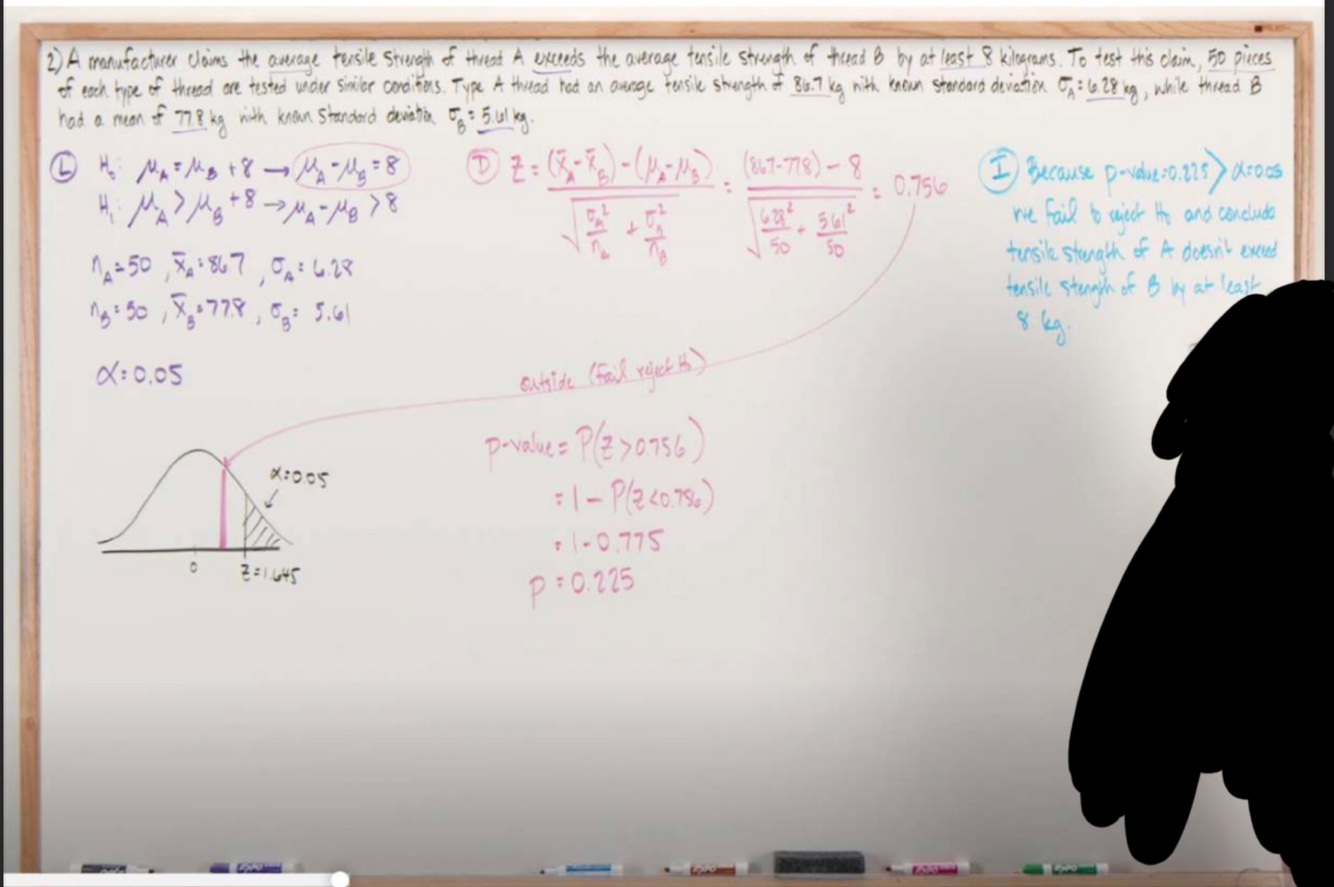Hypothesis test for population means(two sample test & known standard deviation) Ex2