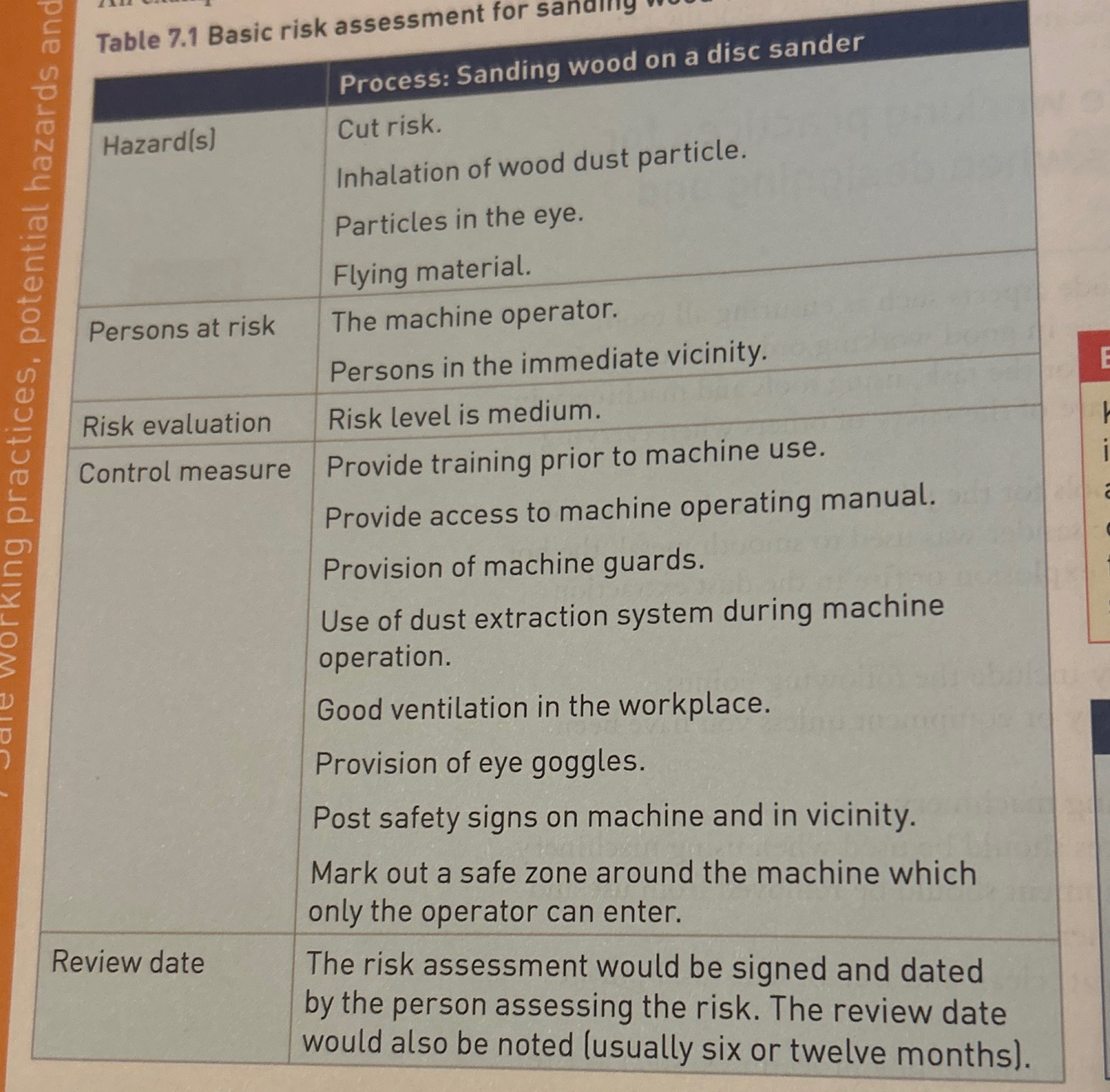Picture of basic risk assemesnt for sanding wood on a disc sander