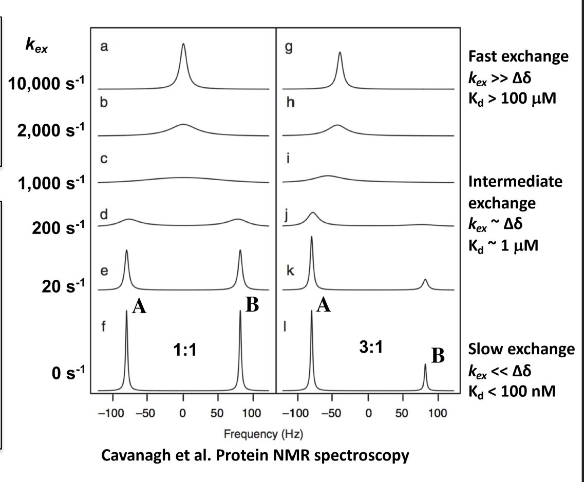 If a molecule exists in two states (eg cis/trans, bound/unbound, etc) that create different chemical environments, it will exchange between those states at a rate kex that is defined by k1 + k2 (rates going from A to B and B to A)*