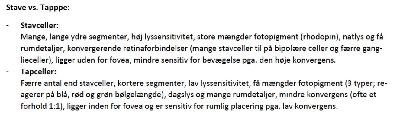 Læsegruppens forskel på stave og tappe er vedlagt som billede.