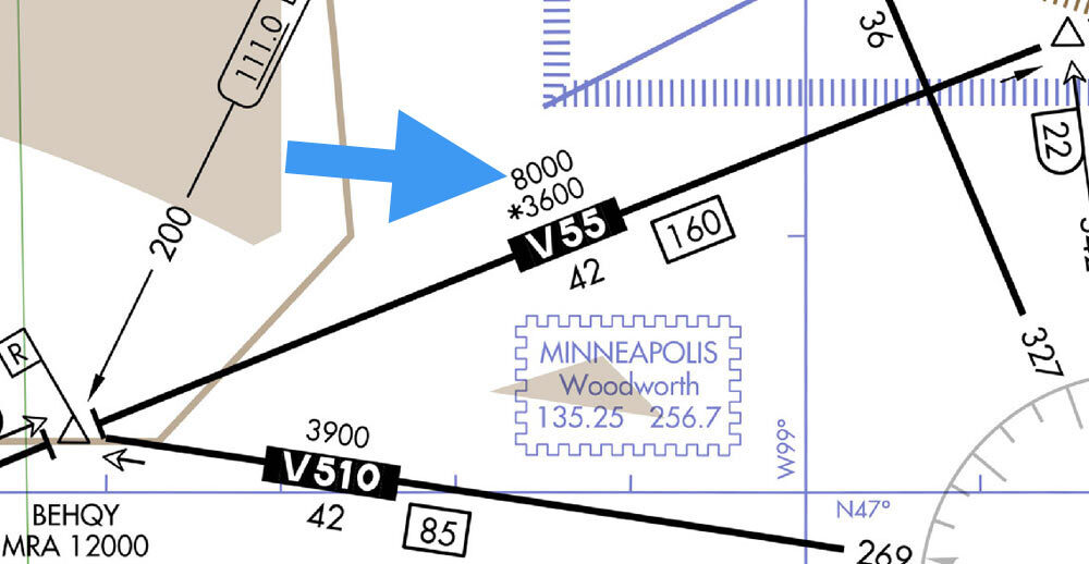 aircraft flying on RNAV routes. lowest published altitude between fixes that assures obstacle clearance and adequate navigation signal coverage along the route segment.