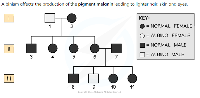 Person 9 is an affected individual with albinism: as this is determined by the recessive allele they must have two copies of the albinism allele.