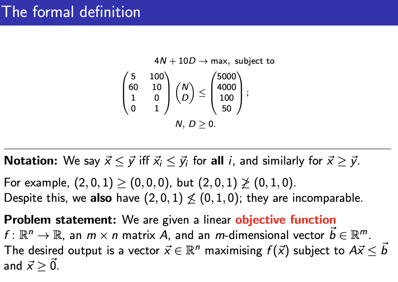 Linear programming formal definition
