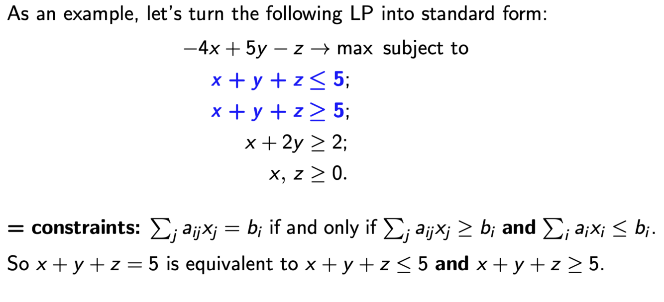 How to split a = into standard form linear programming