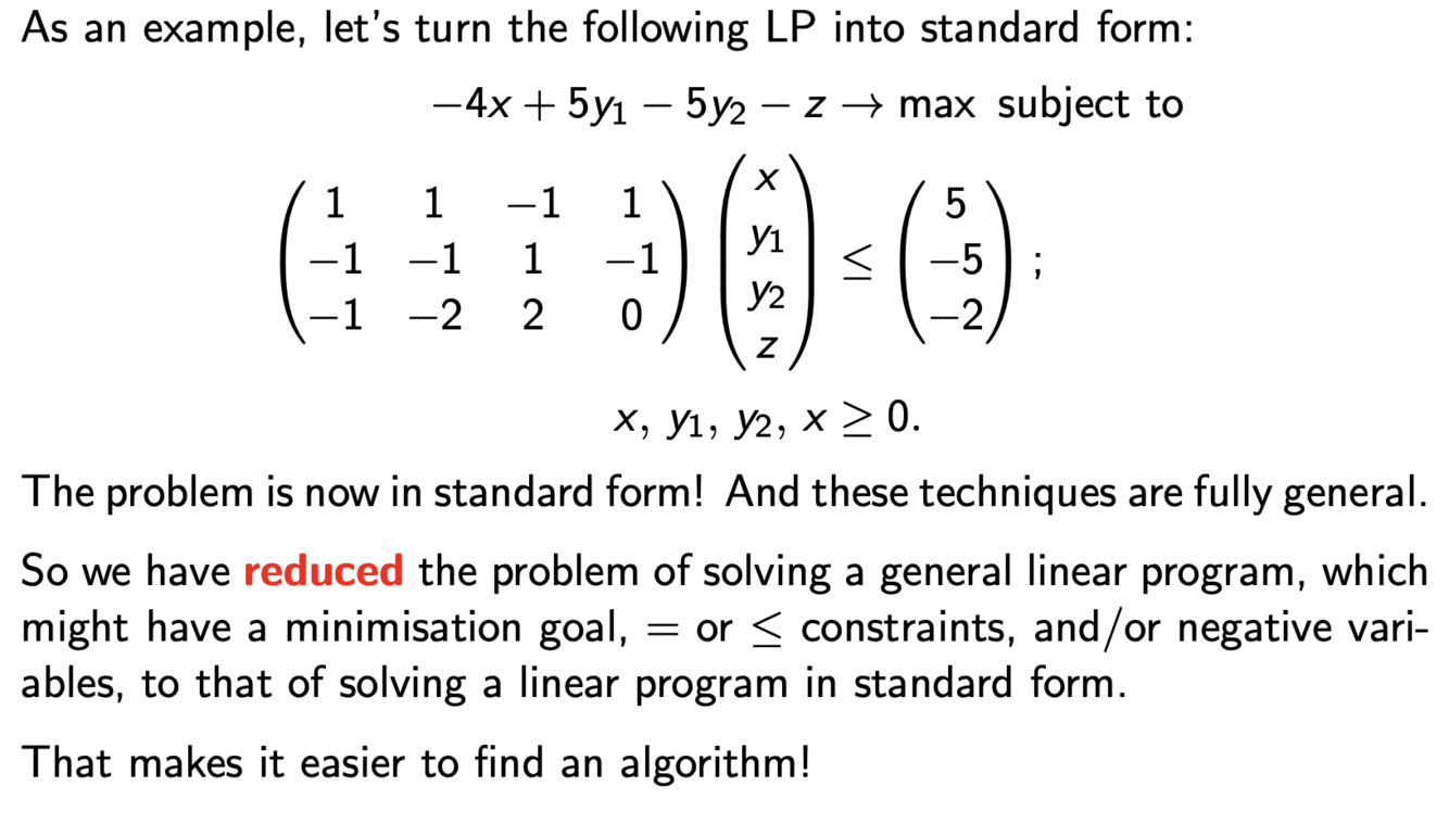 What does reduced linear programming standard form look like
