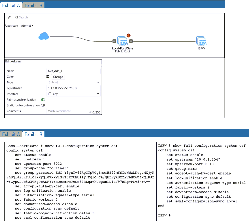 An administrator creates a new address object on the root FortiGate (Local-FortiGate) in the security fabric. After synchronization, this object is not available on the downstream FortiGate (ISFW).