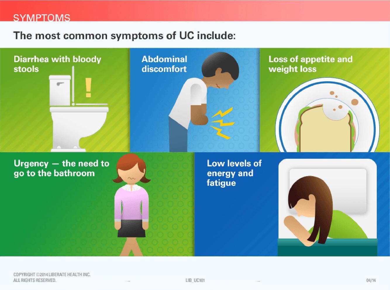What are some symptoms associated with ulcerative colitis?