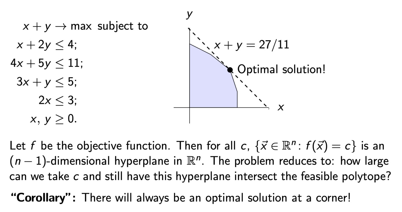 What is the geometric meaning of the objective function? And why is a solution always in the corner?