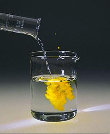 A solid that is produced as a result of a chemical reaction in solution and that separates from the solution.