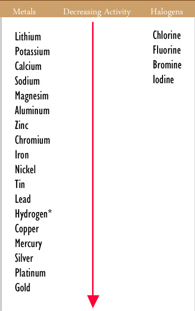 A list of elements organized according to the ease with which the elements undergo certain chemical reactions.