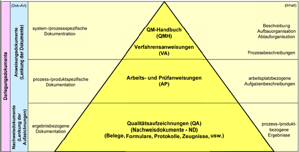 Die Dokumentation eines Qualitätsmanagementsystems besteht typischerweise aus drei Ebenen: