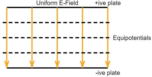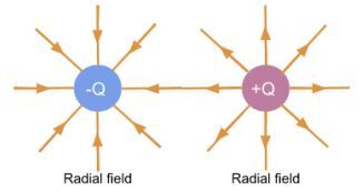 Draw two radial electric fields one around a negative charge and the on around a positive charge.