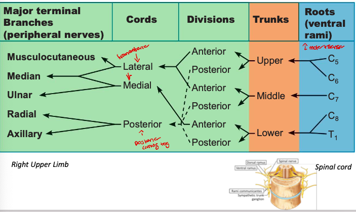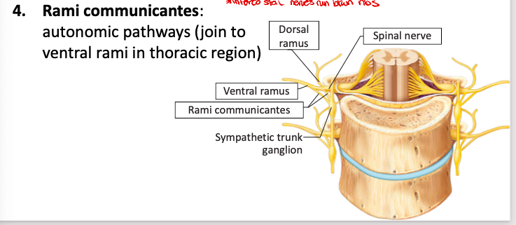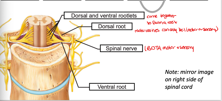 Spinal chord -> Rootlets -> root -> spinal nerve -> rami
