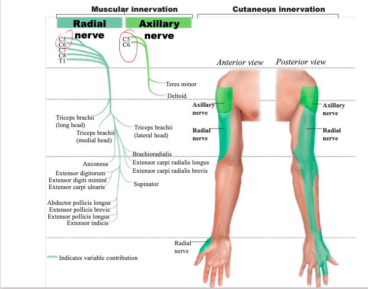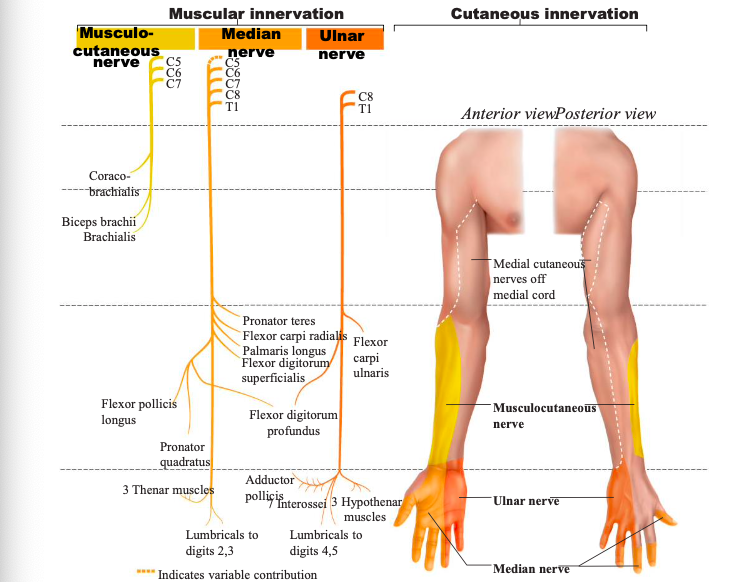 motor: lateral flexors & pronators in forarm + some lateral intrinsic muscles of hand