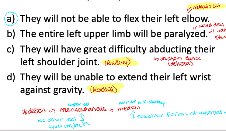 what would happen if lateral chord of the left brachial plexus was completely severed