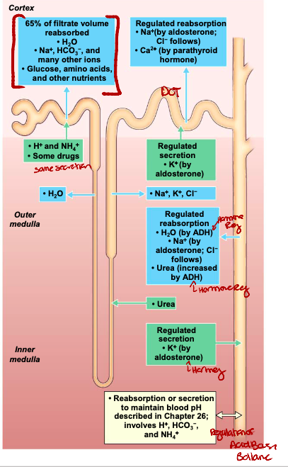 * Substances synthesized in tubule cells are secreted (e.g. HCO3–)