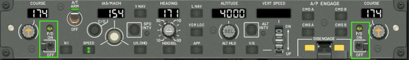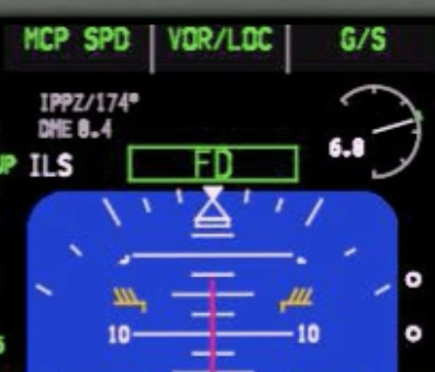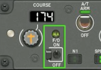 FD (Green) - flight director is ON and the autopilot is either OFF or engaged in CWS mode