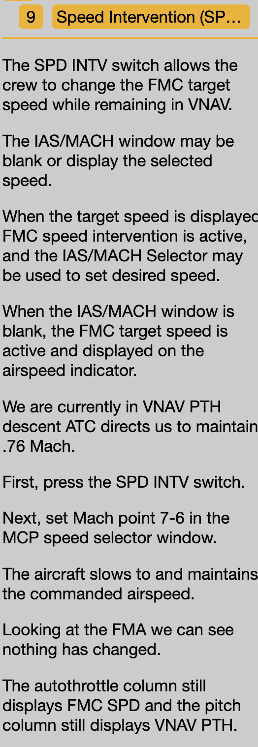 VNAV SPD - the AFDS maintains the FMC speed displayed on the airspeed indicator and/or the CDU CLIMB or DESCENT pages