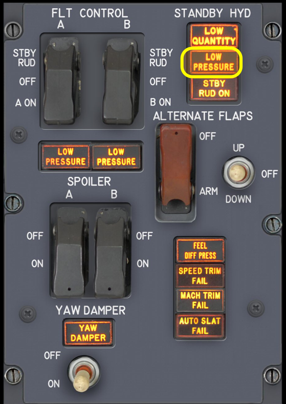 Overhead Flight Control Panel - STBY HYD Low Press