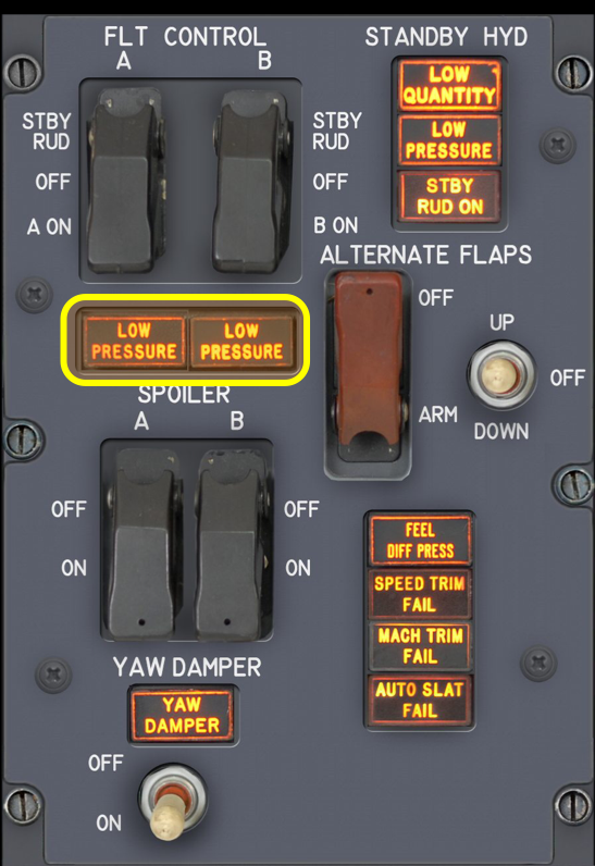 Overhead Flight Control Panel - Low Press FLT Control