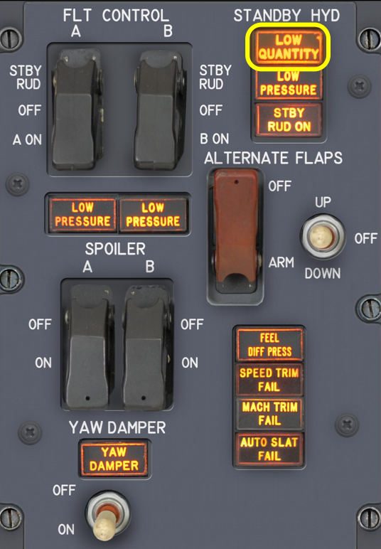 Overhead Flight Control Panel - STBY HYD Low Quantity