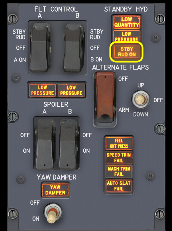 Overhead - Flight control panel - STBY RUD