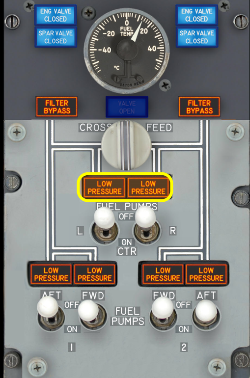 Overhead Fuel Panel - Center tank low press