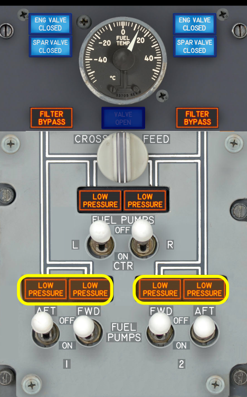 Overhead fuel panel - L/R Fuel pump low press