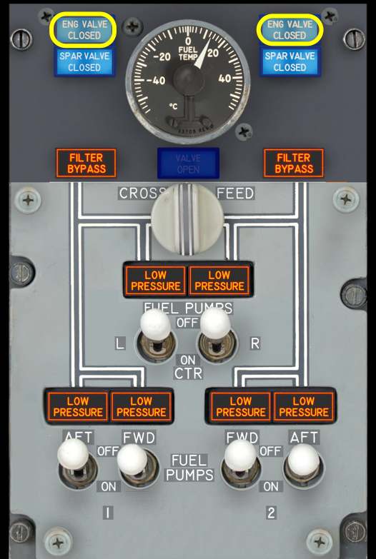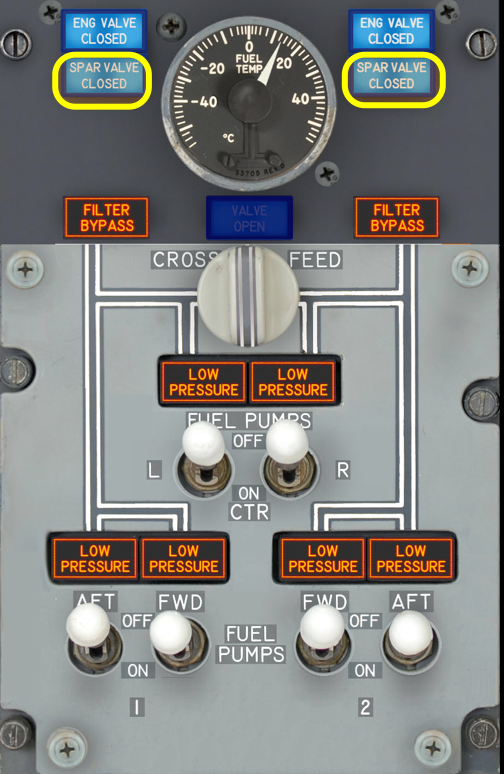 Overhead - Fuel Panel - SPAR VALVE CLOSED