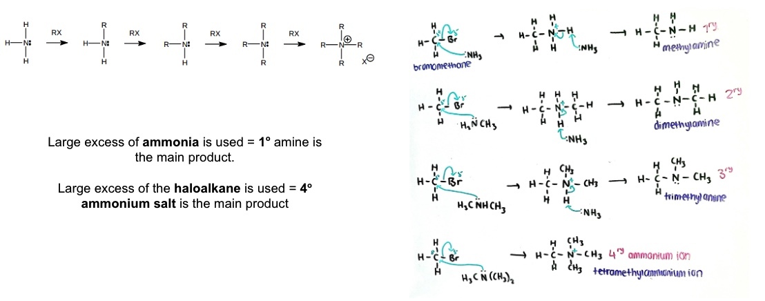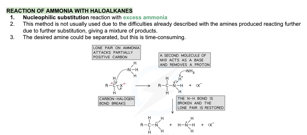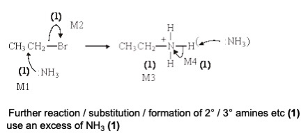 Outline a mechanism for the formation of ethylamine from bromoethane. State why the