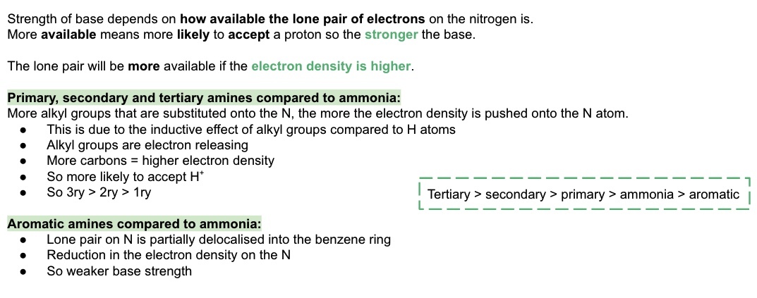 Explain why 3-aminopentane is a stronger base than ammonia (3)