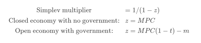 The simple multiplier is equal to , where z is the marginal propensity to spend out of national income.
