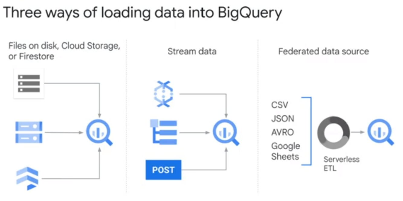 Instead of using a job to load data into BigQuery, you can choose to stream your data into BigQuery one record at a time. This approach enables querying data without the delay of running a load job. But enabling streaming on BigQuery is not free.