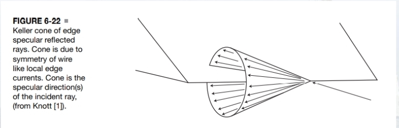 Edge currents generate specular scattering in a Keller cone of reflected waves.