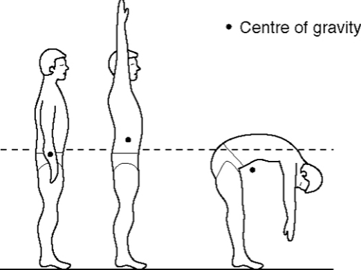The lower the centre of gravity is, the more balanced something will be. This is why wrestlers will get into a low fighting stance during competition.