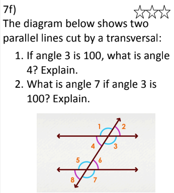 8th Grade Math Star Cards