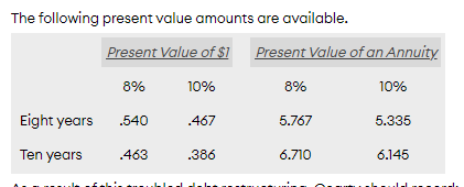 Loan Amount 200,000 x PV of $1 at 10% for 8 years .467 = 93,400