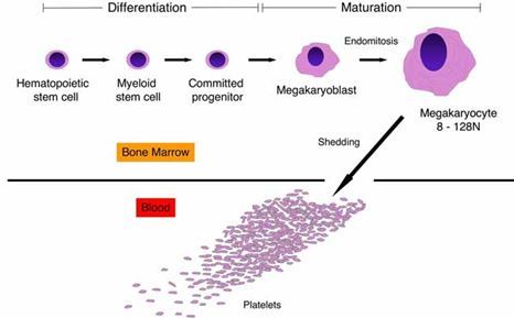 HSC -> myeloid SC -> committed progenitor -> megakaryoblast -> megakaryocyte