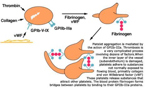 The blood protein fibrinogen forms bridges between platelets by binding to what?
