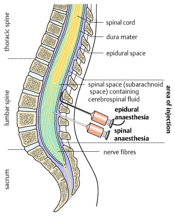 Where is spinal anesthesia injected?