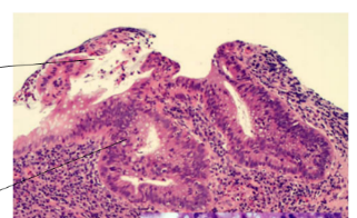 UC: loss of definition, continuous superficial ulceration